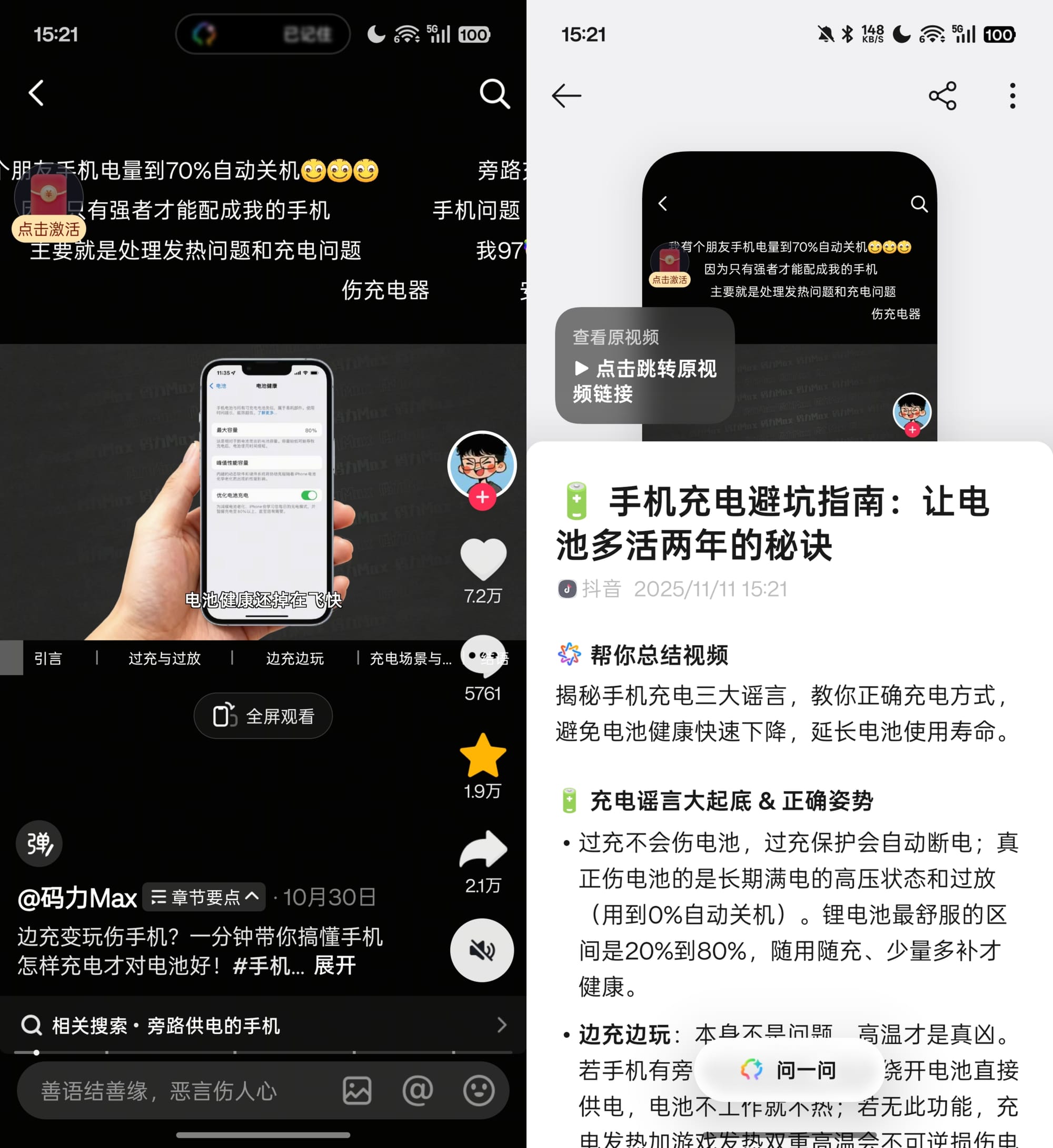 我经常使用的一个场景是在抖音或者Bilibili遇到有意思的视频,点击收藏后,小布助手将会自动帮你总结视频的内容并保存到小布记忆中,方便快速的查看和回顾。