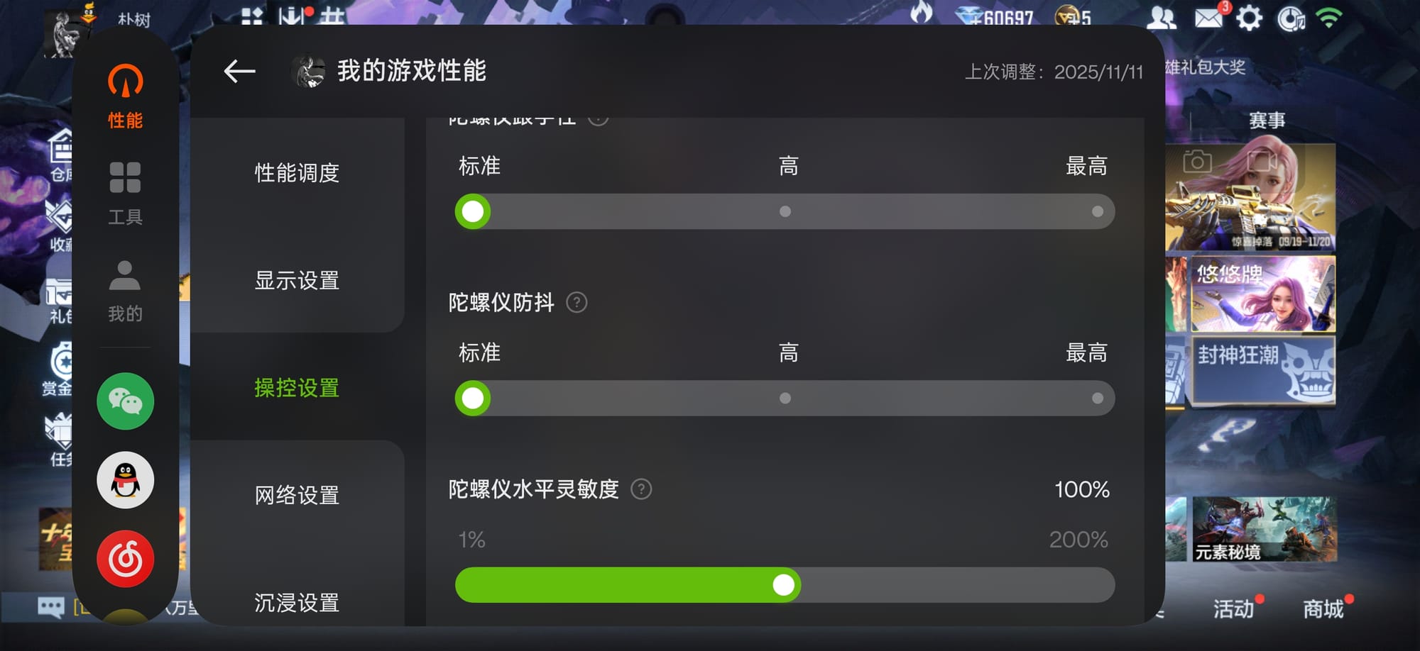 此外游戏助手也提供了丰富的功能,包括非常实用的旁路供电,触控灵敏度调节等,可以满足我日常使用中的个性化定制。